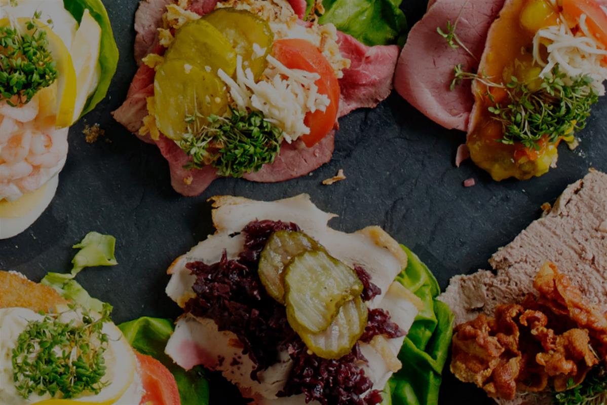 - Varmrøget laks m/krydderurte-dressing og flütes